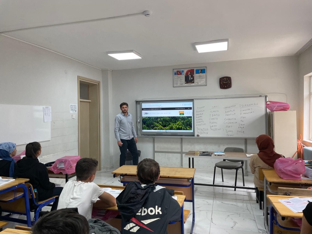 Okulumuzda İlk Ders Ağaç Sevgisi ve Orman Yangınlarına Karşı Yeşil Vatan'ı Korumak" teması ile yapıldı.